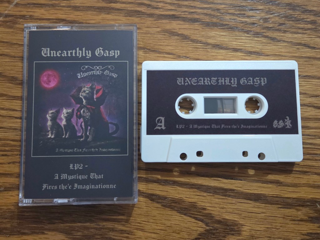 The second LP from Unearthly Gasp is a major comfort album for me. There’s something deeply emotional that’s infused the music, sometimes felt heavy and profound and at others drifted upon like a memory that flitters through the mind. Vignettes of melody dance together, sharing sequences that form patterns unrecognizable at first. In a simple function it is hope eternal, yearning unending, and simple existing all rolled up into one being. Some serious guest appearances like Spife and Ithildin show up on this album as well, and these tapes were done by Grime Stone Records.