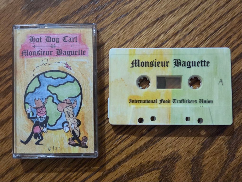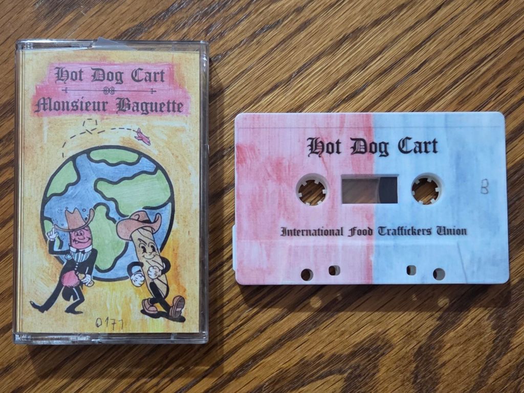 Wow did “International Food Traffickers Union” sink its claws into me the first time I listened to it. A split endeavor between two pantry staples of the food synth genre. Monsieur Baguette delivers some extra crispy hip-hop flavored bites, bringing forth what can only be called food hop. Or deli hop? Cafe hop? It takes the idea of lo-fi coffee shop hop and slathers hot butter all over it. Hot Dog Cart comes into the second half of the split with every intention of hypnotizing you into grilling 16 hot dogs and handing them out on the street corner, spreading a little bit of happiness before heading home. Exhibiting every bit of the troublesome whimsy HDC is known for, the almost honky tonk blues shamble infused with a new age retro future designed pizza parlor jukebox set. Tapes for this split were done by Personal Uschi Records, and came out fantastic.
