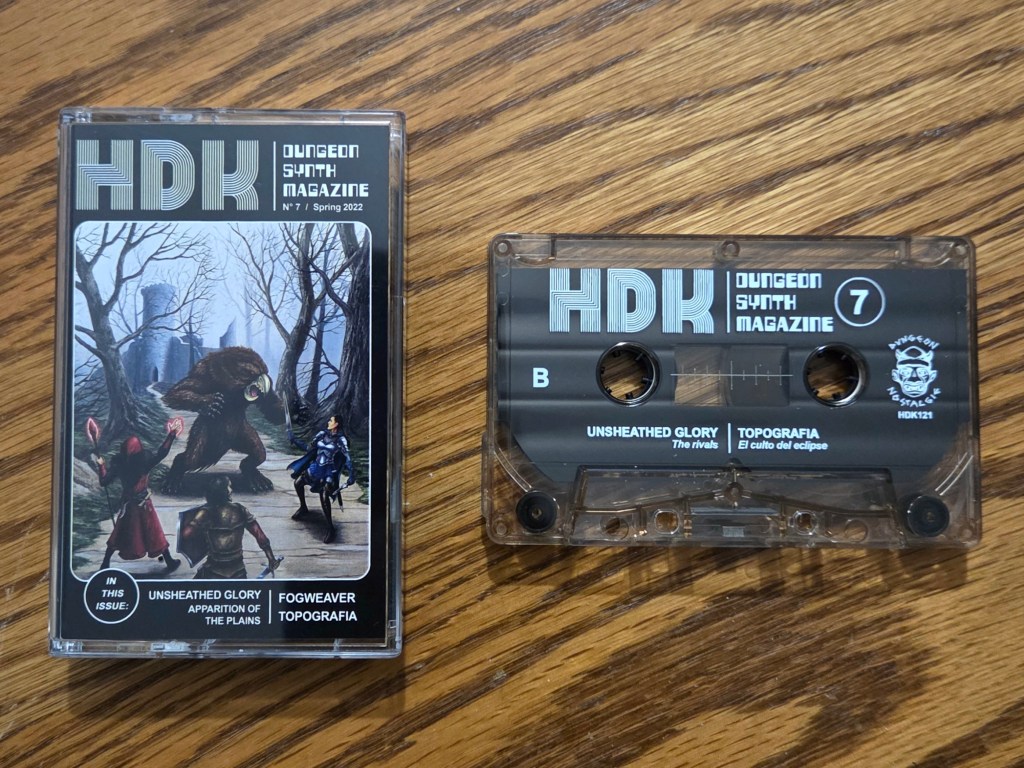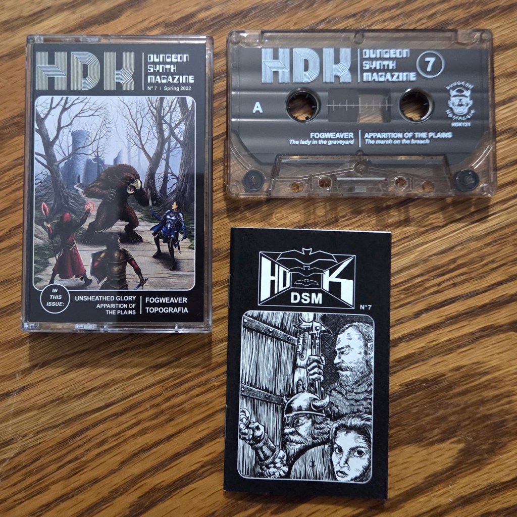 Random tape pull time. Picked a shelf, picked a tape, and listened all the way through. In this case, I read all the way through, too. I love the Dungeon Synth Magazine series from Heimat Der Katastrophe. I only have a couple, maybe one or two, of this auditory narrative project. The format is great: four short stories paired with four songs from four different artists.